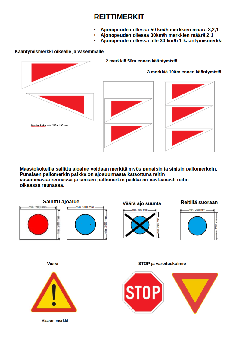 Virallinen reitti, jolta kilpailija ei saa poistua mistään syystä, merkitään reittimerkein ja