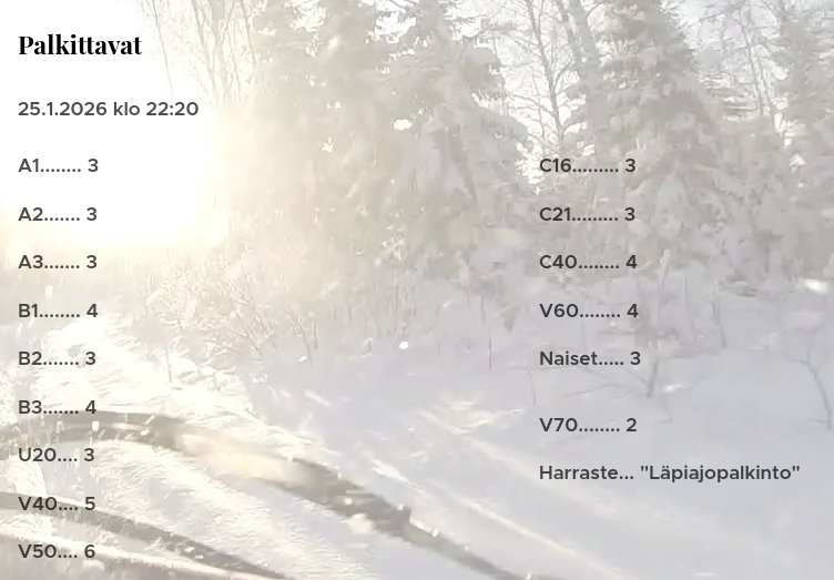 5.1.2026 saatu ilmoittautuminen auki tulosarkistoon eli Motti 2:een. Kilpailijoiden kannattaa katsoa tarkkaan ostaessaan lisenssiä, että valittuna on oikea kerho, jota aikoo edustaa kaudella 2026. Tulosarkistoon pitää kirjautua sisään tarvittaessa unohditko salasanan kautta. Kun ostaa esimerkiksi kertalisenssin, niin nyt voi sen jälkeen ilmoittautua myös kilpailuun ja vasta tämän jälkeen maksaa ostokset kerralla. Aikaa ostosten suorittamiseen on kolme tuntia, tämän jälkeen tiedot häviävät.
